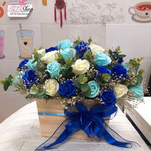Lẵng hoa hồng sáp thơm để bàn sắc xanh để bàn