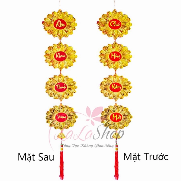 Liễn Treo Trang Trí Tết Hoa cúc vàng Chúc Mừng Năm Mới - An khang thịnh vượng trang trí cây mai, đào, khung cửa, tường nhà ngày tết mang đến nhiều điều may mắn, đón tài, đón lộc, làm ăn buôn bán thuận lợi, phát đạt cho bản thân và gia đình.