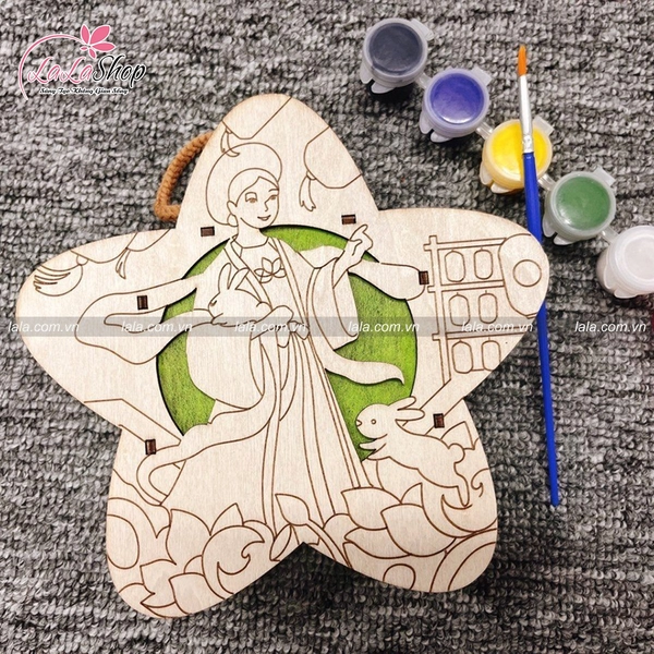 Lồng Đèn Trung Thu Bằng Gỗ Hình Ngôi Sao Chị Hằng Nga Kèm Màu
