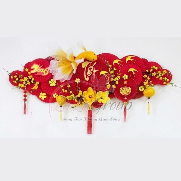 Mẹt tre lớn trang trí tiểu cảnh tết Cá Chép Vàng Tài Lộc Mừng Xuân