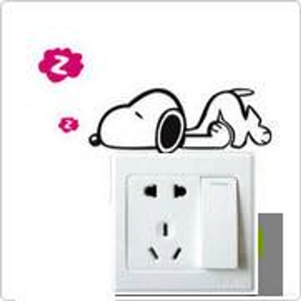 Decal dán tường ổ điện chó ngủ lười với họa tiết xinh xắn, tạo vẻ đẹp sinh động, cuốn hút cho không gian nhà ở.