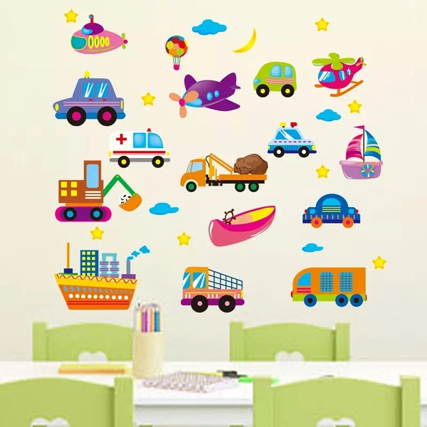 Decal dán tường Phương tiện giao thông 8 trang trí phòng trẻ em thật sặc sỡ màu sắc. decan dan tuong xe co còn làm công cụ dạy bé biết các loại xe cộ.