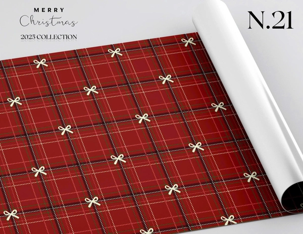 Set 5 Giấy Gói Quà họa tiết noel caro đỏ và nơ