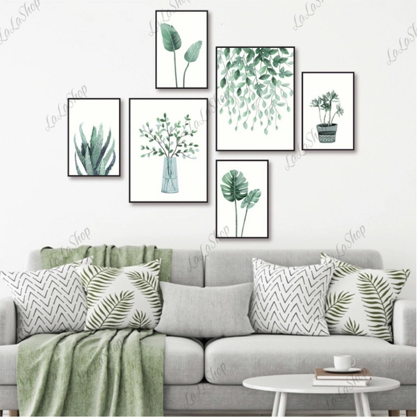 Set 6 Tranh Dán Tường Lá Xanh Nghệ Thuật Có Keo Sẵn