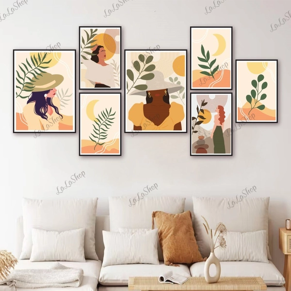 Set 7 Tranh Dán Tường Cô Gái Và Lá Xanh Nghệ Thuật Có Keo Sẵn Mẫu 2