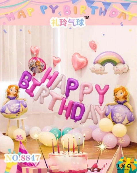 Set Bong Bóng Trang Trí Sinh Nhật HappyBirthday công chúa 2 dùng trang trí background, có thể dán trực tiếp lên tường hoặc rèm kim tuyến mang đến một không khí tiệc sinh nhật hoành tráng cực kì ấn tượng.