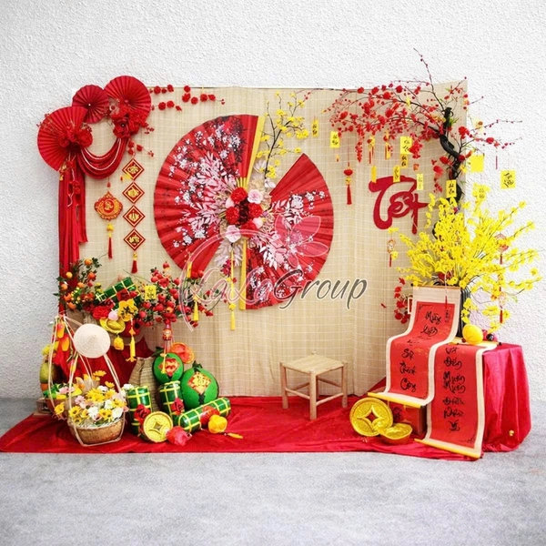 Tông màu hồng - đỏ - vàng được phối hợp tinh tế giúp không gian trở nên ấm áp, tươi sáng và mang ý nghĩa sum vầy, hạnh phúc đầu năm. Sản phẩm thi công nhanh, bền màu và dễ dàng di chuyển, rất thích hợp cho những ai muốn tạo nên một tiểu cảnh Tết ấn tượng, thu hút mà vẫn giữ được nét truyền thống xen lẫn hiện đại.