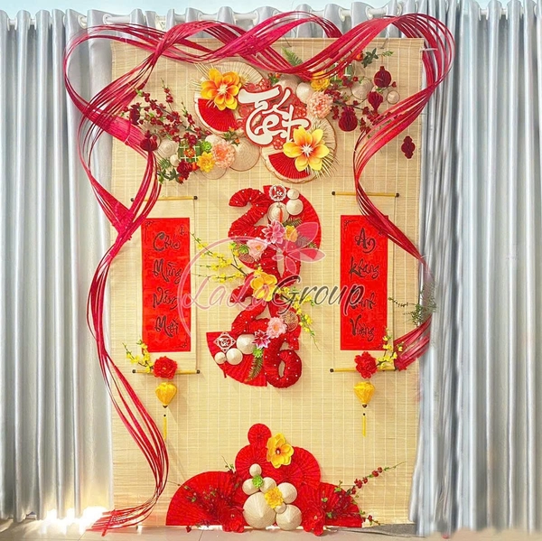 Tiểu cảnh mành tre trang trí tết Chúc mừng năm mới an khang thịnh vượng 2026 tại LaLa shop với những mô hình Cành đào, Bánh chưng, Bánh tét, Nón lá, Hoa mai những chậu hoa màu vàng tuyệt đẹp sẽ tô điểm cho không gian nhà bạn ngập tràn sắc xuân chào đón năm mới bình an sum vầy.
