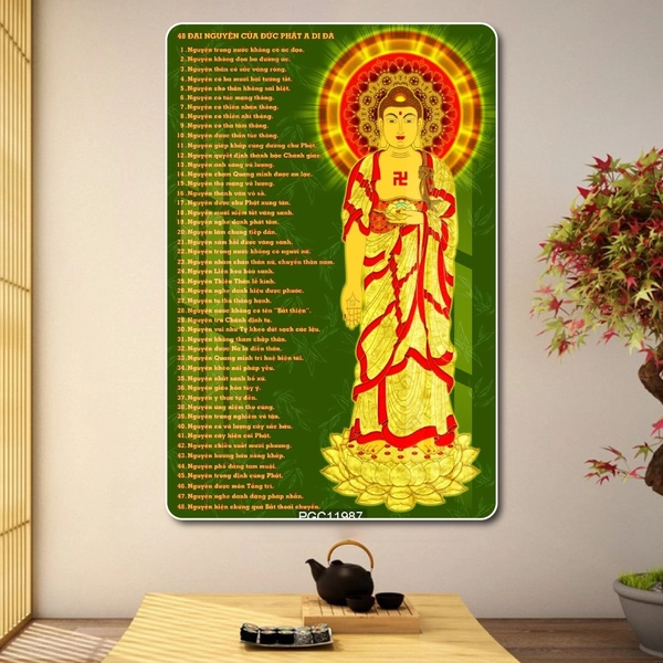 Khoảng trống trên các bức tường khô khan, đơn điệu là vị trí tưởng chừng xấu xí nhất trong căn nhà nhưng nay lại trở nên thật độc đáo và ấn tượng khi đã có Tranh 48 đại nguyện của đức phật a di đà. Là dòng tranh công nghệ mới, đang là xu hướng trang trí tường đơn giản nhưng mang lại vẻ đẹp hiện đại và sang trọng được mọi người ưa chuộng nhất hiện nay.