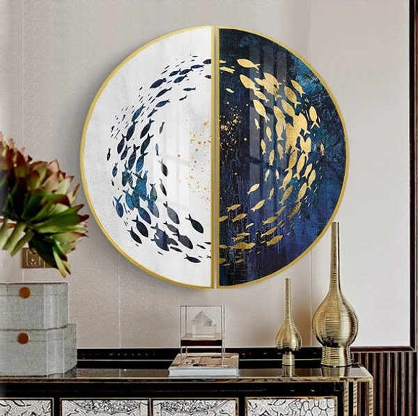 Tranh Bán Nguyệt Cá Vàng Nghệ Thuật là lựa chọn tuyệt vời cho không gian sống đầy sáng tạo và tươi mới. Với hình ảnh chú cá vàng đáng yêu bơi lội trong làn nước, tranh không chỉ mang đến vẻ đẹp mềm mại, nhẹ nhàng mà còn là biểu tượng của may mắn và tài lộc. Bức tranh không những trang trí không gian mà còn là mang lại cảm giác thư thái, xoa dễ chịu bạn mỗi khi ngắm nhì