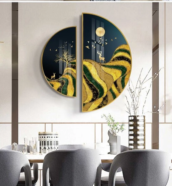 Khoảng trống trên các bức tường khô khan, đơn điệu là vị trí tưởng chừng xấu xí nhất trong căn nhà nhưng nay lại trở nên thật độc đáo và ấn tượng khi đã có Tranh Bán Nguyệt Nghệ Thuật Hươu Vàng Dưới Ánh Trăng. Là dòng tranh công nghệ mới, đang là xu hướng trang trí tường đơn giản nhưng mang lại vẻ đẹp hiện đại và sang trọng được mọi người ưa chuộng nhất hiện nay.