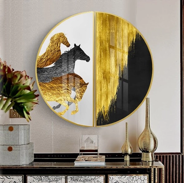 Tranh Bán Nguyệt Nghệ Thuật Tam Mã Tài Lộc mang đậm ý nghĩa phong thủy, biểu tượng của sức mạnh, sự kiên định và tài lộc. Ba chú ngựa đang phi nước đại tượng trưng cho sự phát đạt, may mắn và sự thăng tiến không ngừng. Bức tranh không những trang trí không gian mà còn là mang lại cảm giác thư thái, xoa dễ chịu bạn mỗi khi ngắm nhì