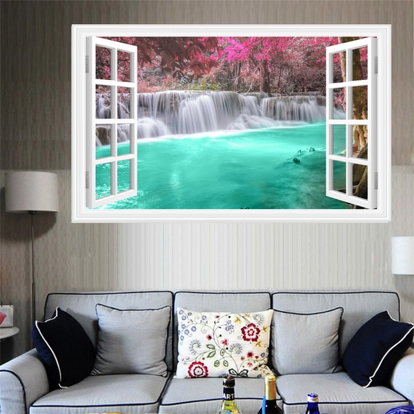 Tranh cửa sổ thác nước xanh được in bằng công nghệ Hàn Quốc, sau khi in được cán, tráng, phủ lớp bảo vệ trên bề mặt để tăng độ dày