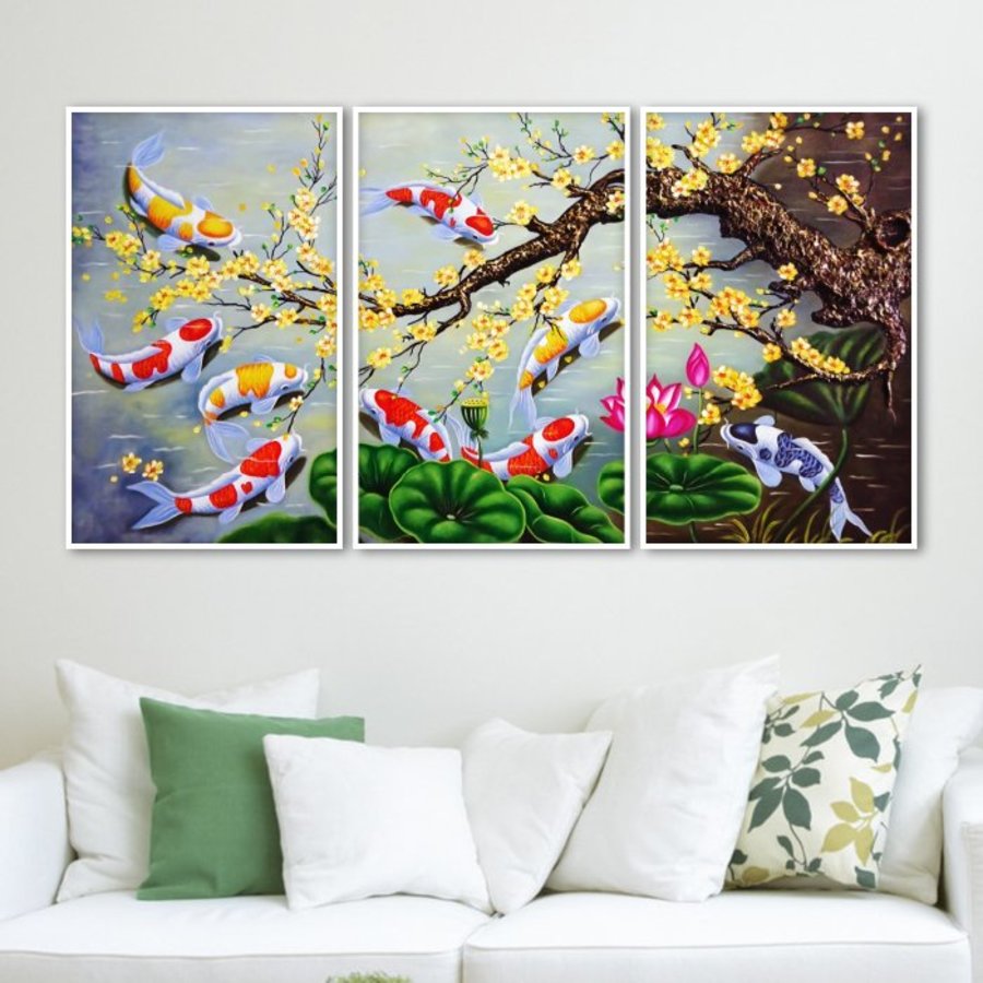 Khoảng trống trên các bức tường khô khan, đơn điệu là vị trí tưởng chừng xấu xí nhất trong căn nhà nhưng nay lại trở nên thật độc đáo và ấn tượng khi đã có Tranh Treo Tường Cửu Ngư Quần Hội 3D Mai Vàng Bên Ao Sen. Là dòng tranh công nghệ mới, đang là xu hướng trang trí tường đơn giản nhưng mang lại vẻ đẹp hiện đại và sang trọng được mọi người ưa chuộng nhất hiện nay.