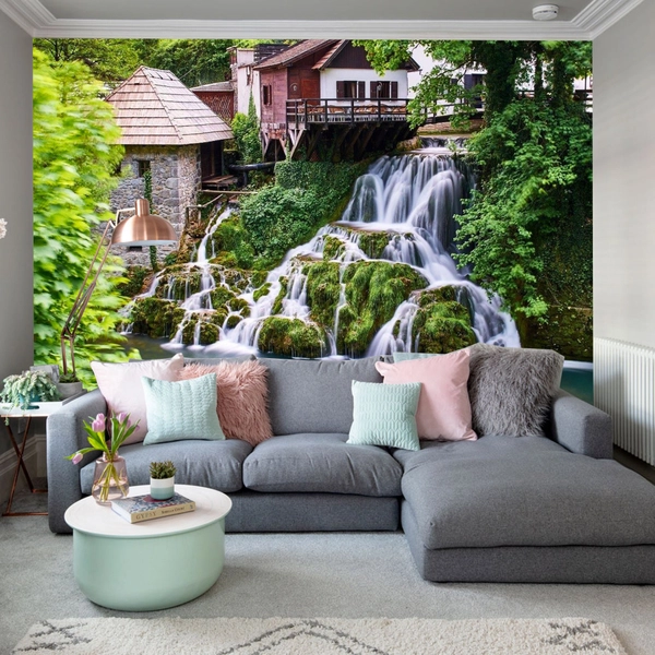 Tranh dán tường nhà cạnh thác là vật liệu trang trí nhà kiểu mới, đẹp, nổi bật hơn hẳn so với sơn nhà truyền thống. Bức tranh dán tường 3D giúp truyền tải cảm hứng nghệ thuật, làm giảm bớt sự đơn điệu của nội thất, trang hoàn lại không gian cho ngôi nhà một cách hiệu quả. Đặc biệt tạo cho chúng ta cái nhìn đa chiều về thiên nhiên, cảnh vật, con người và góc nhìn thực tế của cuộc sống.