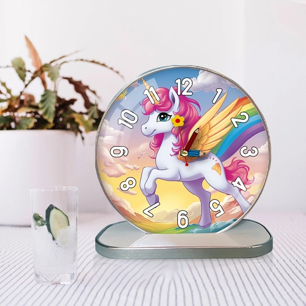 Tranh Đồng Hồ Để Bàn Ngựa Thiên Thần Pony Cầu Vồng là sự kết hợp hoàn hảo giữa nghệ thuật và chức năng, mang đến cho không gian sống của bạn một nét tươi sáng và vui tươi. Hình ảnh ngựa thiên thần với màu sắc cầu vồng rực rỡ không chỉ tạo cảm giác vui vẻ mà còn truyền tải thông điệp về sự tự do và sáng tạo. Đồng hồ không những xem giờ và trang trí không gian mà còn là mang lại cảm giác thư thái, xoa dễ chịu bạn mỗi khi ngắm nhìn.