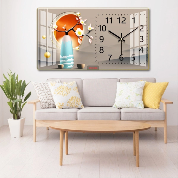 Tranh Đồng Hồ Treo Tường UV Pha Lê Bình Hoa Nghệ Thuật 3