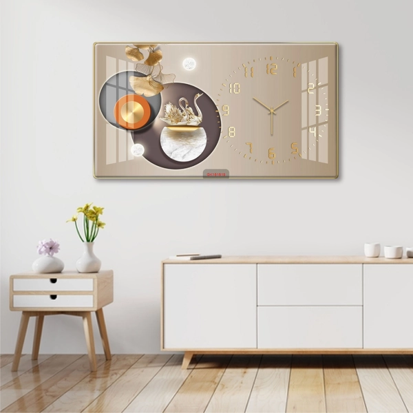 "Tranh Đồng Hồ Treo Tường UV Pha Lê Bóng Đôi Thiên Nga Nghệ Thuật" mang hình ảnh đôi thiên nga tuyệt đẹp trong ánh sáng trắng hồng mờ ảo không chỉ mang đến vẻ đẹp tinh tế mà còn tạo điểm nhấn nghệ thuật cho không gian sống của bạn.