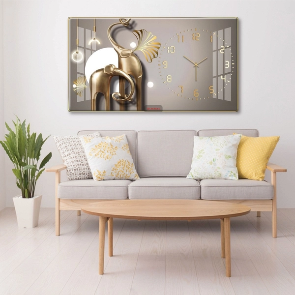 Tranh Đồng Hồ Treo Tường UV Pha Lê Bóng Voi Nghệ Thuật