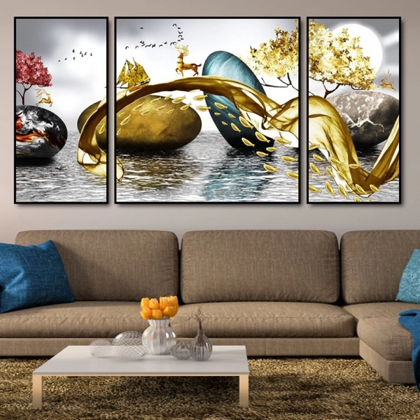 1. Chất liệu Canvas khung gỗ thông: Tranh được in trên vải Canvas nhập khẩu, chất lượng cao giúp hình ảnh sống động, trung thực. Bề mặt tranh được căng và cố định trên khung gỗ thông, mang lại khả năng chống mối mọt cao. Điểm nổi bật của chất liệu là khối lượng nhẹ, thích hợp treo tường thạch cao, vách tạm.
