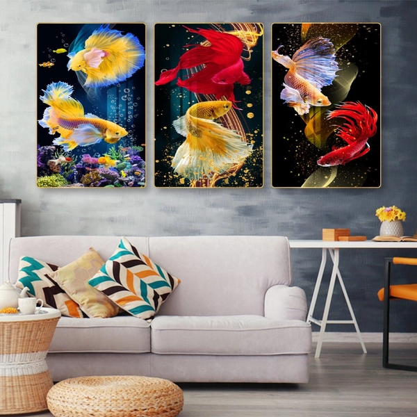 Khoảng trống trên các bức tường khô khan, đơn điệu là vị trí tưởng chừng xấu xí nhất trong căn nhà nhưng nay lại trở nên thật độc đáo và ấn tượng khi đã có Tranh treo tường 3 tấm cá nghệ thuật. Là dòng tranh công nghệ mới, đang là xu hướng trang trí tường đơn giản nhưng mang lại vẻ đẹp hiện đại và sang trọng được mọi người ưa chuộng nhất hiện nay.