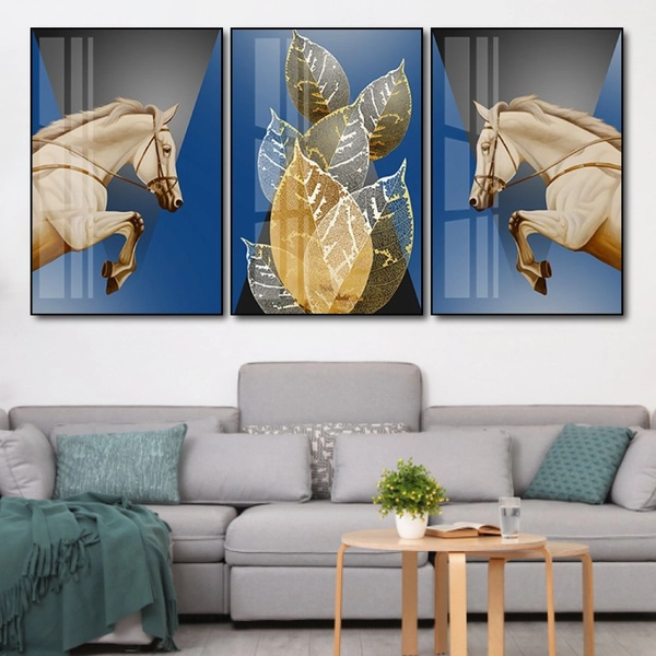 Tranh treo tường "Bạch mã và lá vàng" là tác phẩm nghệ thuật tuyệt đẹp miêu tả sự uy phong của chú ngựa trắng kết hợp với họa tiết lá vàng nổi bật. Bức tranh không chỉ mang đến sự tinh tế mà còn gợi lên cảm giác thanh lịch và quý phái, thích hợp để trang trí trong nhiều không gian khác nhau từ phòng khách, phòng làm việc đến các khu vực tiếp khách sang trọng. Phong cách thiết kế hiện đại cùng màu sắc hài hòa tạo nên một điểm nhấn ấn tượng cho ngôi nhà của bạn.