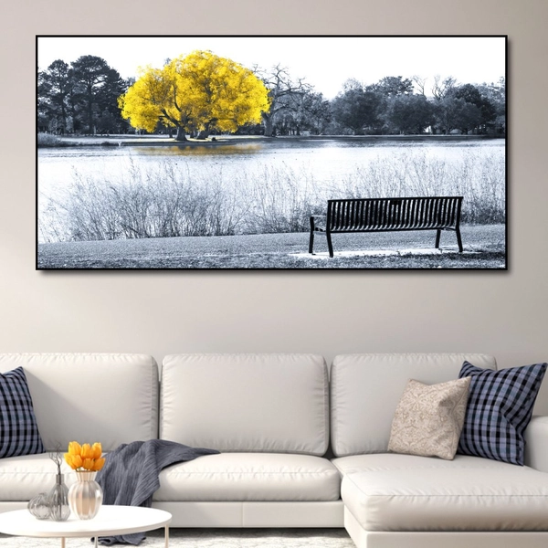 Tranh treo tường cây vàng giữa hồ thổi luồng gió thiên nhiên vào trong ngôi nhà bạn, đem lại sự tươi mát, thư giãn cho không gian. Thích hợp trang trí nhà, quà tặng người thân, đối tác, đồng nghiệp nhân khai trương, tân gia, các dịp lễ,...