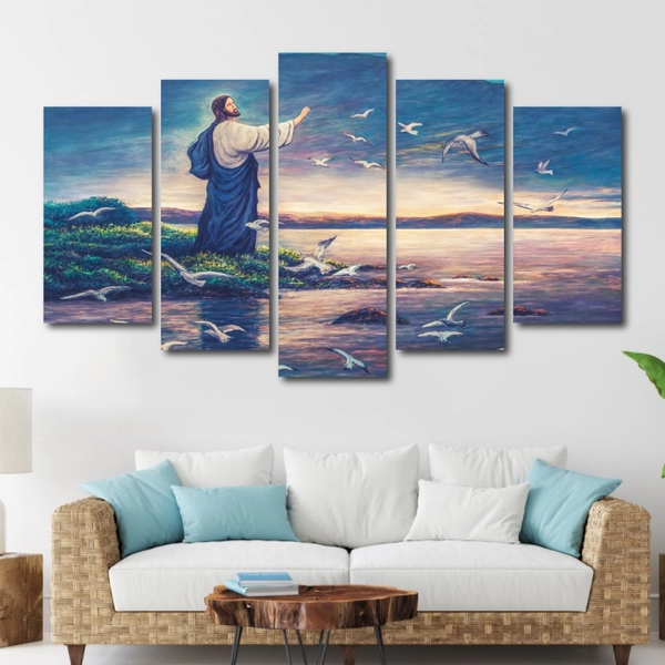 Khoảng trống trên các bức tường khô khan, đơn điệu là vị trí tưởng chừng xấu xí nhất trong căn nhà nhưng nay lại trở nên thật độc đáo và ấn tượng khi đã có Tranh treo tường chúa giêsu và đàn chim. Là dòng tranh công nghệ mới, đang là xu hướng trang trí tường đơn giản nhưng mang lại vẻ đẹp hiện đại và sang trọng được mọi người ưa chuộng nhất hiện nay.