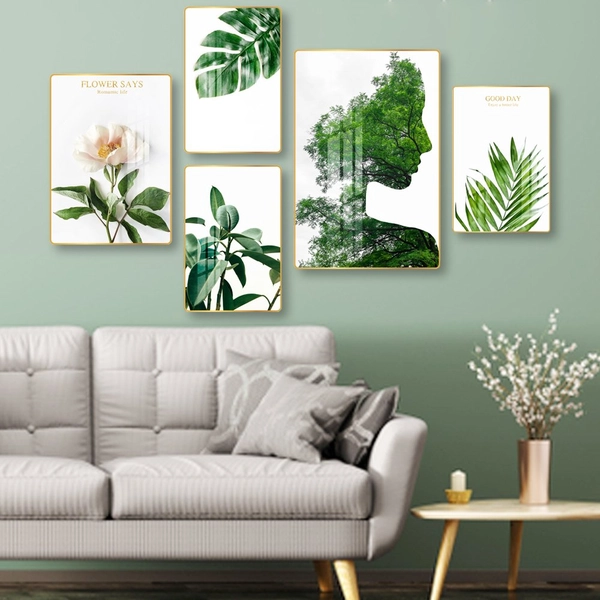 Khoảng trống trên các bức tường khô khan, đơn điệu là vị trí tưởng chừng xấu xí nhất trong căn nhà nhưng nay lại trở nên thật độc đáo và ấn tượng khi đã có Tranh treo tường cô gái và lá xanh.