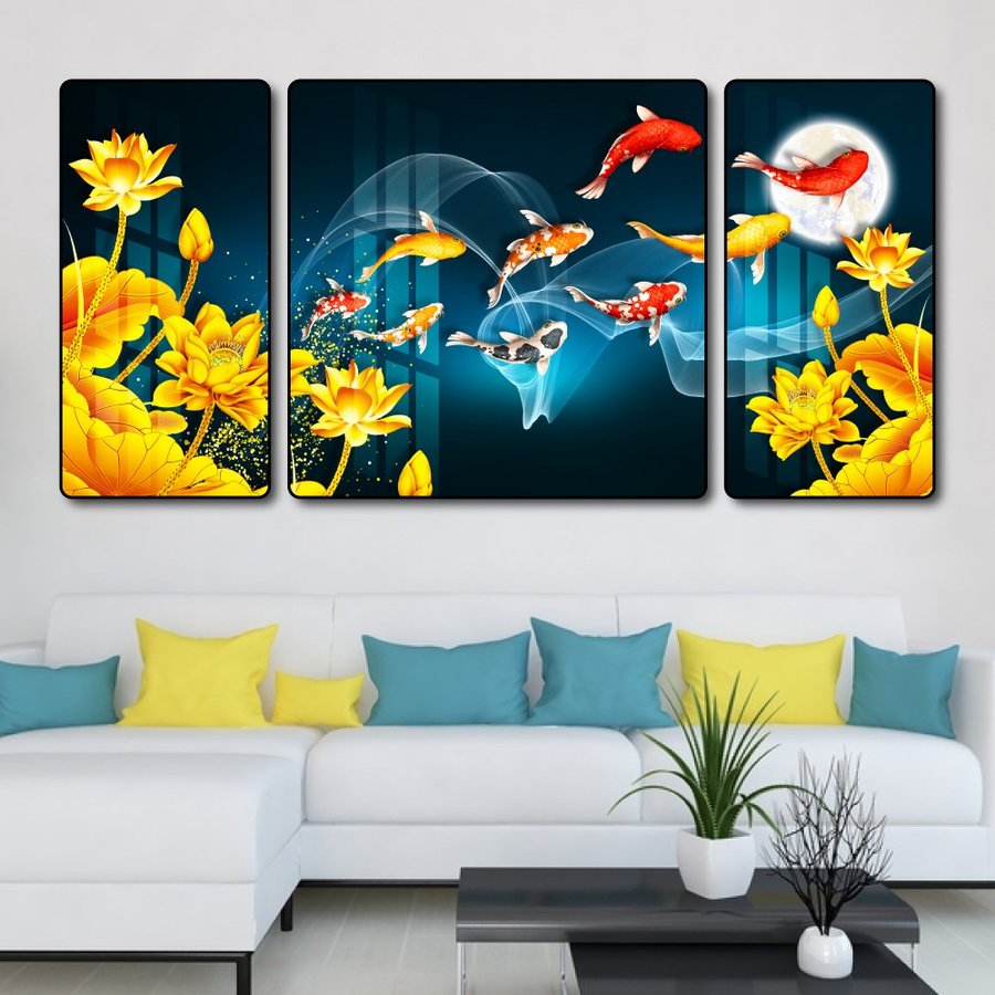 Tranh Treo Tường Cửu Ngư Quần Hội 17 thổi luồng gió mới vào trong ngôi nhà bạn, đem lại sự bình yên, thư giãn cho không gian. Thích hợp trang trí nhà, quà tặng người thân, đối tác, đồng nghiệp nhân khai trương, tân gia, các dịp lễ,...