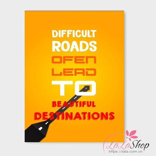 Tranh treo tường "Difficult roads lead to beautiful destinations" mang ý nghĩa sâu sắc và khích lệ, nhắc nhở chúng ta về sự kiên trì và niềm tin trong cuộc sống. Với thông điệp mạnh mẽ, bức tranh không chỉ là một món trang trí mà còn là nguồn cảm hứng, động lực mỗi ngày. Gam màu chủ đạo thường là những tông màu tươi sáng kết hợp với phông chữ nghệ thuật, tạo nên sự hài hòa và tinh tế cho không gian sống của bạn.