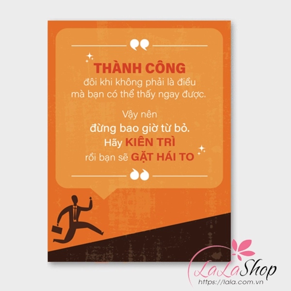Bức tranh treo tường “Đừng Bao Giờ Từ Bỏ, Hãy Kiên Trì Rồi Bạn Sẽ Gặt Hái To” không chỉ là một tác phẩm nghệ thuật, mà còn là nguồn động lực mạnh mẽ cho mỗi cá nhân. Với thông điệp khích lệ tinh thần kiên trì và bền bỉ, tranh mang đến sự cảm hứng và quyết tâm để bạn vượt qua mọi thử thách. Phong cách thiết kế hiện đại và chữ viết nổi bật trên nền đơn giản giúp bức tranh dễ dàng hòa hợp với nhiều không gian khác nhau, từ phòng làm việc đến phòng học.