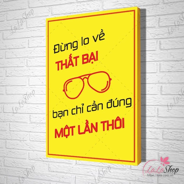 Bức tranh treo tường “Đừng Lo Về Thất Bại” truyền tải thông điệp mạnh mẽ về việc không sợ hãi thất bại và khuyến khích nỗ lực không ngừng để vượt qua mọi thử thách. Với thiết kế đơn giản nhưng đầy ý nghĩa, tranh mang đến sự động viên và tinh thần lạc quan cho mọi không gian. Đây là lựa chọn lý tưởng để trang trí phòng làm việc, phòng học hoặc không gian sống của bạn, giúp bạn luôn nhắc nhở bản thân về tầm quan trọng của sự kiên trì và nỗ lực.