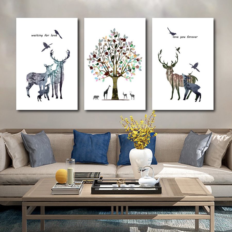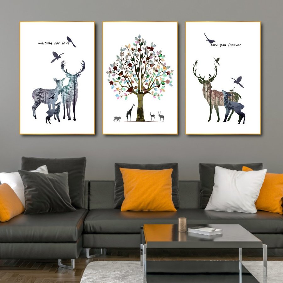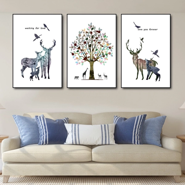 Khoảng trống trên các bức tường khô khan, đơn điệu là vị trí tưởng chừng xấu xí nhất trong căn nhà nhưng nay lại trở nên thật độc đáo và ấn tượng khi đã có Tranh Treo Tường Gia Đình Hươu Và Cây Sắc Màu. Là dòng tranh công nghệ mới, đang là xu hướng trang trí tường đơn giản nhưng mang lại vẻ đẹp hiện đại và sang trọng được mọi người ưa chuộng nhất hiện nay.