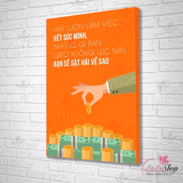 Tranh Treo Tường Hãy Luôn Làm Việc Hết Sức Mình"" mang ý nghĩa khuyến khích và động viên mạnh mẽ về sự nỗ lực, cống hiến và quyết tâm trong công việc và cuộc sống.Màu sắc và phong cách: