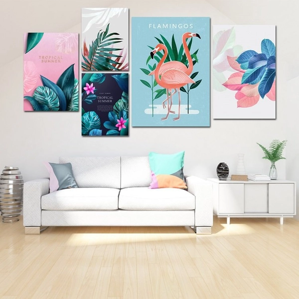 Tranh treo tường hồng hạc và lá nhiệt đới thổi luồng gió thiên nhiên vào trong ngôi nhà bạn, đem lại sự tươi mát, thư giãn cho không gian. Thích hợp trang trí nhà, quà tặng người thân, đối tác, đồng nghiệp nhân khai trương, tân gia, các dịp lễ,...