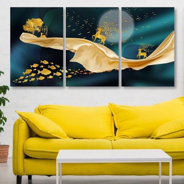 Tranh Treo Tường Hươu Vàng Tài Lộc là một tác phẩm nghệ thuật độc đáo, miêu tả hình ảnh hươu vàng đang di chuyển trên dải ngân hà, biểu tượng của may mắn và tài lộc. Tranh không chỉ mang đến vẻ đẹp sang trọng mà còn tạo ra một không gian đầy năng lượng tích cực và thành công.