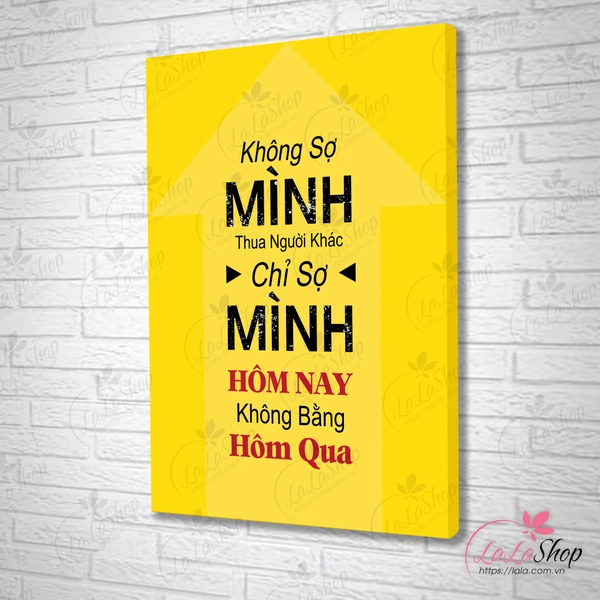 Bức tranh “Không Sợ Mình Thua Người Khác” không chỉ là một tác phẩm nghệ thuật đẹp mắt, mà còn mang đến thông điệp sâu sắc về sự tự tin và sự nỗ lực cá nhân. Được thiết kế với phong cách hiện đại và tối giản, tranh khuyến khích bạn không so sánh bản thân với người khác, mà hãy tập trung vào việc cải thiện chính mình mỗi ngày. Sự so sánh chỉ làm giảm giá trị bản thân, và sự thành công thực sự đến từ sự cố gắng và quyết tâm của chính bạn.