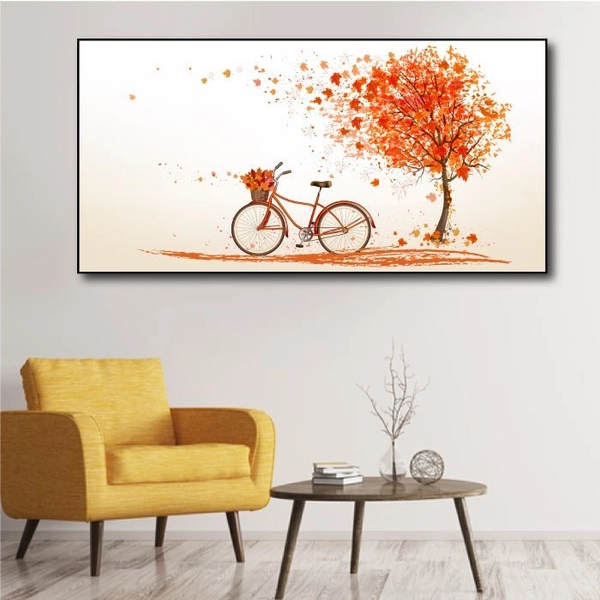 Tranh Treo Tường Lá Đỏ Trời Thu mang đến sự ấm áp và lãng mạn của mùa thu vào không gian sống của bạn. Bức tranh khắc họa hình ảnh cây lá đã chuyển sang sắc cam đỏ rực rỡ, dưới tán cây là một chiếc xe đạp, tạo nên khung cảnh yên bình và đầy thơ mộng. Đây là tác phẩm lý tưởng cho những ai yêu thích sự lãng mạn và sự thay đổi dịu dàng của thiên nhiên trong mùa thu.