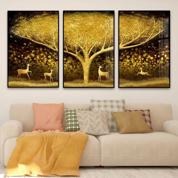 Khoảng trống trên các bức tường khô khan, đơn điệu là vị trí tưởng chừng xấu xí nhất trong căn nhà nhưng nay lại trở nên thật độc đáo và ấn tượng khi đã có Tranh treo tường nai vàng và cây vàng lộng lẫy. Là dòng tranh công nghệ mới, đang là xu hướng trang trí tường đơn giản nhưng mang lại vẻ đẹp hiện đại và sang trọng được mọi người ưa chuộng nhất hiện nay.