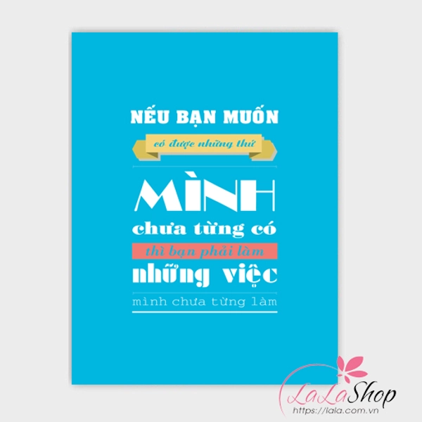 Tranh treo tường "Bạn phải làm những việc mình chưa từng làm" là một tác phẩm nghệ thuật mang thông điệp mạnh mẽ về sự đột phá và quyết tâm. Bức tranh với câu slogan nổi bật này sẽ là nguồn cảm hứng vô tận, khuyến khích bạn dám bước ra khỏi vùng an toàn và khám phá những điều mới mẻ. Với phong cách hiện đại và sự kết hợp màu sắc tinh tế, bức tranh không chỉ trang trí không gian sống mà còn mang lại động lực mạnh mẽ cho người xem.