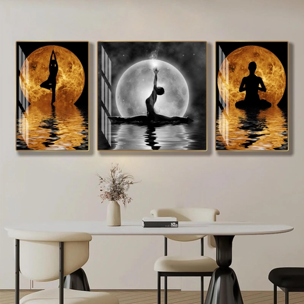 Khám phá vẻ đẹp thanh tĩnh và sâu lắng với Tranh Treo Tường Nghệ Thuật Thiền Dưới Trăng. Bức tranh mô tả hình ảnh một người thiền định dưới ánh trăng huyền bí, mang đến sự bình yên và cảm giác tĩnh lặng cho không gian của bạn.