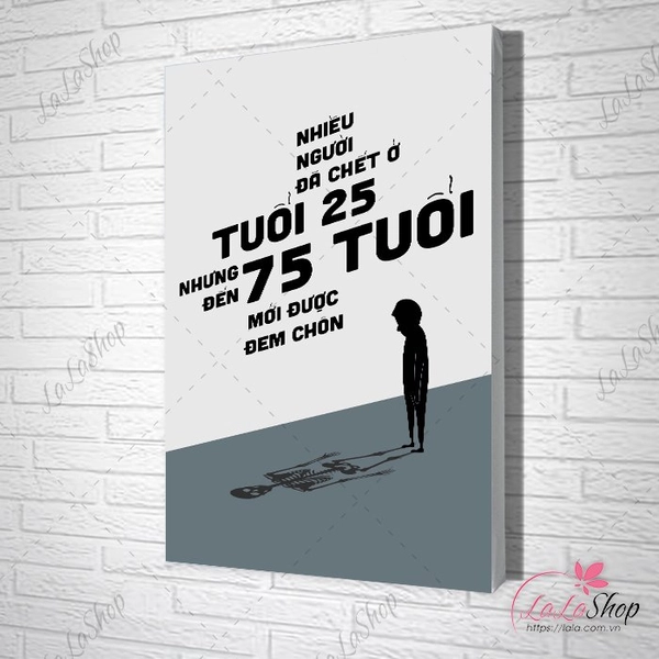 Tranh treo tường Nhiều người đã chết ở tuổi 25 nhưng đến 75 tuổi mới được đem chôn với thiết kế độc đáo sẽ giúp không gian làm việc bạn trở nên sinh động, tràn đầy năng lượng, cổ vũ tinh thần cho cả công ty , thư giãn xua tan mệt mỏi áp lực trong công việc.