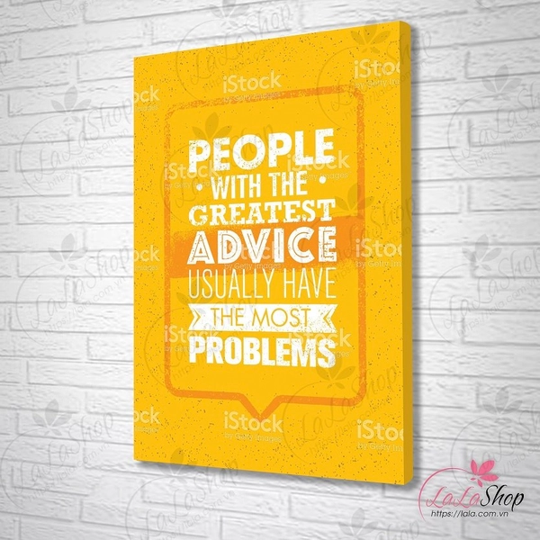 Tranh treo tường slogan "People with the greatest advice usually have the most problems" mang thông điệp sâu sắc về cuộc sống. Đây không chỉ là một bức tranh trang trí mà còn là một lời nhắc nhở tinh tế, đầy ý nghĩa. Với phong cách hiện đại, tối giản, bức tranh dễ dàng hòa quyện với nhiều không gian nội thất khác nhau, từ phòng khách, phòng ngủ đến văn phòng làm việc.
