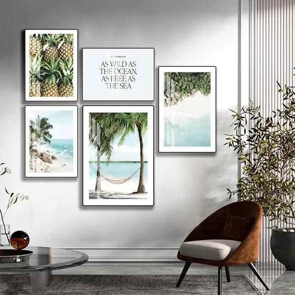 Tranh treo tường phong cảnh biển bộ 5 tấm xanh mát mẫu 855