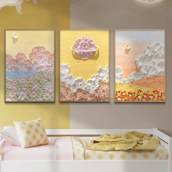 Gỗ và Canvas: Dễ bảo quản, nhẹ, bền và tạo cảm giác gần gũi. Tranh gỗ mang lại sự ấm áp cho không gian, trong khi canvas tạo sự sống động với màu sắc rực rỡ.
