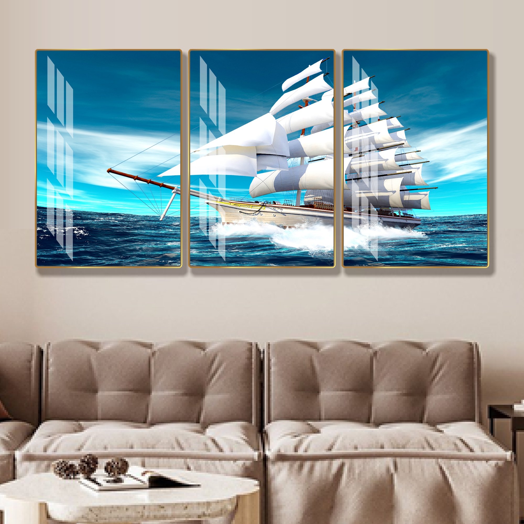 Tranh treo tường thuận buồm xuôi gió phòng khách mẫu 3 tấm 530