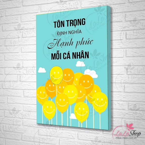 Tranh treo tường Tôn Trọng Định Nghĩa Hạnh Phúc Mọi Cá Nhân là một tác phẩm nghệ thuật tuyệt đẹp, thể hiện sự tôn trọng và đề cao cảm xúc, hạnh phúc riêng của từng cá nhân. Bộ tranh mang đến thông điệp sâu sắc về sự thấu hiểu và đồng cảm, phù hợp để trang trí trong phòng khách, phòng làm việc hay phòng ngủ, tạo nên không gian ấm áp, thân thiện và đầy ý nghĩa. Phong cách tranh tinh tế, kết hợp hài hòa giữa màu sắc và bố cục, giúp tôn vinh giá trị của mỗi cá nhân.