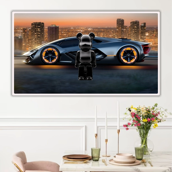 Tranh treo tường trang trí phòng khách gấu Bearbrick siêu xe là một sự kết hợp độc đáo giữa hình ảnh gấu Bearbrick nổi tiếng và những chiếc siêu xe sang trọng. Bức tranh mang phong cách hiện đại, tạo nên điểm nhấn đặc biệt cho không gian phòng khách, thể hiện gu thẩm mỹ cao cấp và cá tính mạnh mẽ của gia chủ.