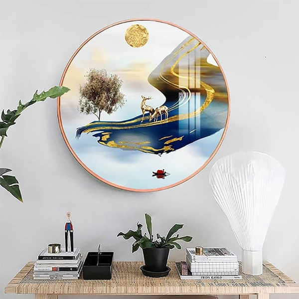 Khoảng trống trên các bức tường khô khan, đơn điệu là vị trí tưởng chừng xấu xí nhất trong căn nhà nhưng nay lại trở nên thật độc đáo và ấn tượng khi đã có Tranh Tròn Tráng Gương Hươu Vàng Dưới Ánh Trăng 2. Là dòng tranh công nghệ mới, đang là xu hướng trang trí tường đơn giản nhưng mang lại vẻ đẹp hiện đại và sang trọng được mọi người ưa chuộng nhất hiện nay.